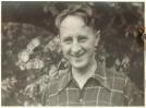 Bohuslav Martinů v rozhalence u keře kvetoucích růží za pobytu v USA