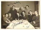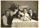 Bohuslav Martinů a Charlotte u Macháčků o Vánocích. Zleva Charlotte Martinů, neznámý mladík, Egon Hostovský, neznámá mladá žena, Marie Macháčková, Alén Diviš, neznámý mladý muž, Bohuslav Martinů a Josef Macháček
