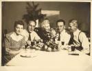 Bohuslav Martinů a Charlotte u Macháčků o Vánocích. Marie Macháčková, Bohuslav Martinů, Charlotte Martinů, Alén Diviš, Josef Macháček.