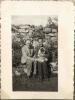 René Leroy a Bohuslav Martinů se psem na klíně sedící u kamenné zídky v zahradě