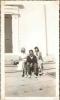 Charlotte Martinů, Bohuslav Martinů a Gladys Posselt Ondříček sedící na schodech před domem