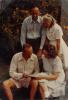 Bohuslav Martinů with a company. Among others there were: Harsányi, Auric, Bernac, Mihalovici, Poulenc, Čerepninová, Tansman, Charlotte Martinů, Čerepnin.