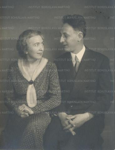 A wedding photography of Bohuslav and Charlotte Martinů, looking at each other